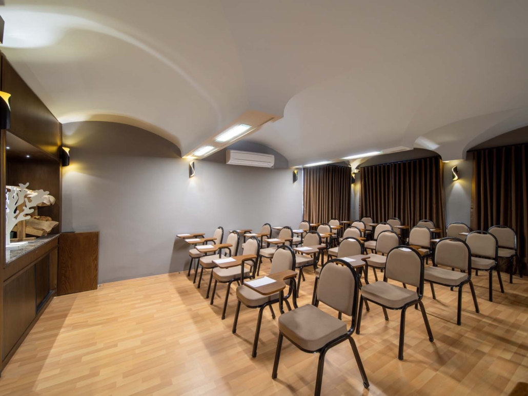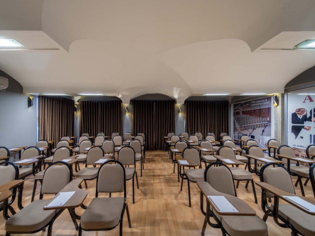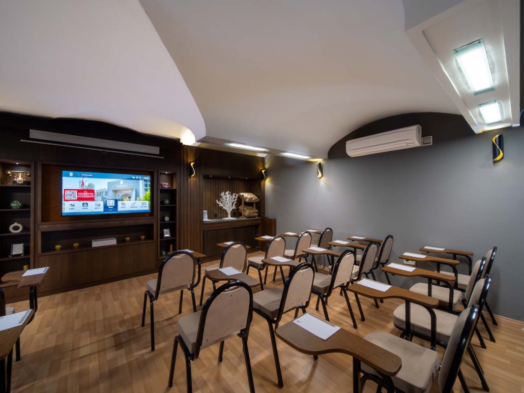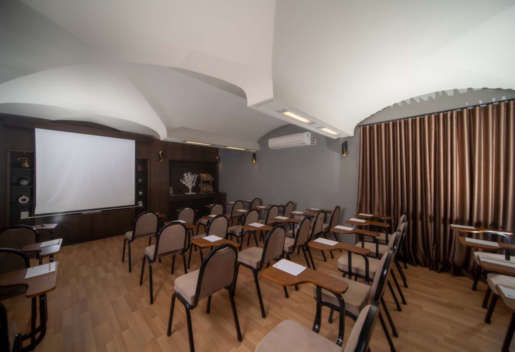 40 m2’lik alanıyla tiyatro ve sınıf düzeninde 40 kişiye hizmet veren çok amaçlı ve küçük çaplı toplantı odamızdır. Eğitimler için ayrıca masalı çalışma koltukları mevcuttur. Tercihinize bağlı olarak istediğiniz düzen sağlanabilir. Örneğin; U düzeni, tiyatro düzeni veya sınıf düzeni.