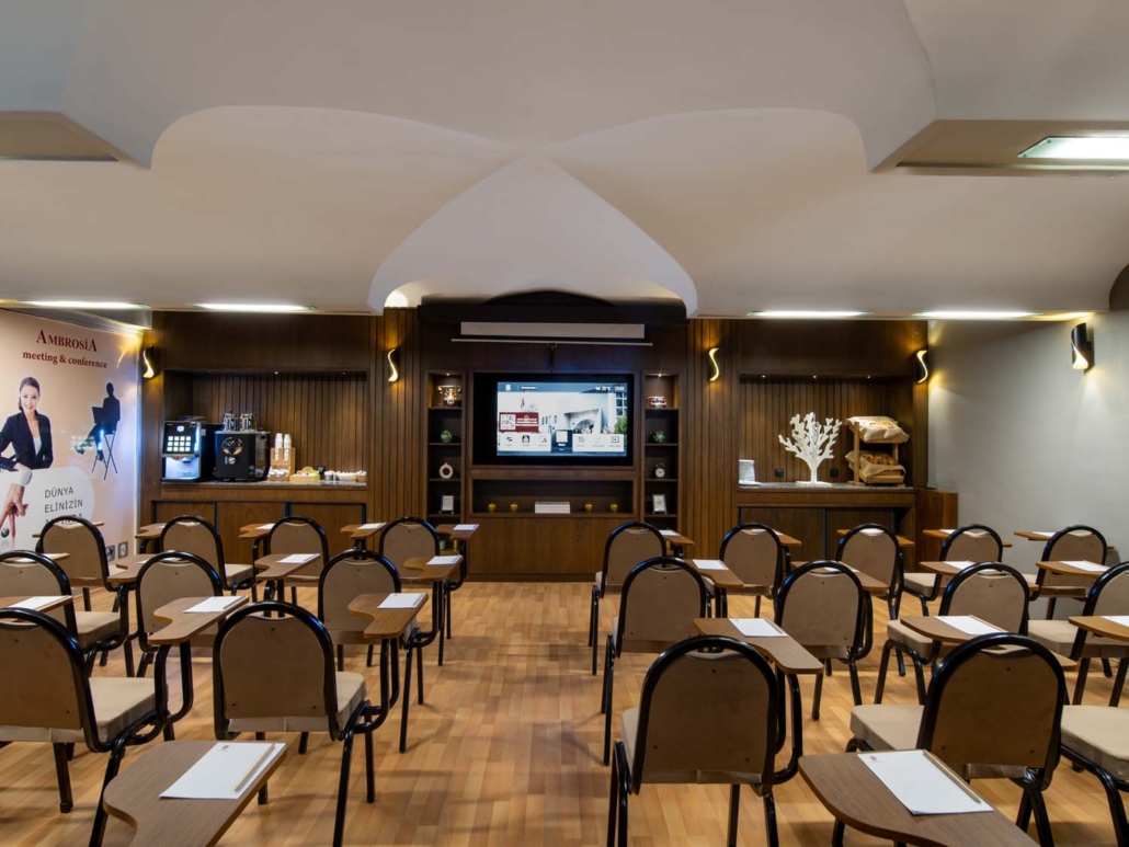 Toplantı odamız karya Vıp toplantı odamızla karşılıklı konumdadır. Gereken durumlarda Karya vıp özel çalışma odası olarak kullanılabilir. Otelimizin ikinci katında gürültüden etkilenmeyen sakin konumdadır.